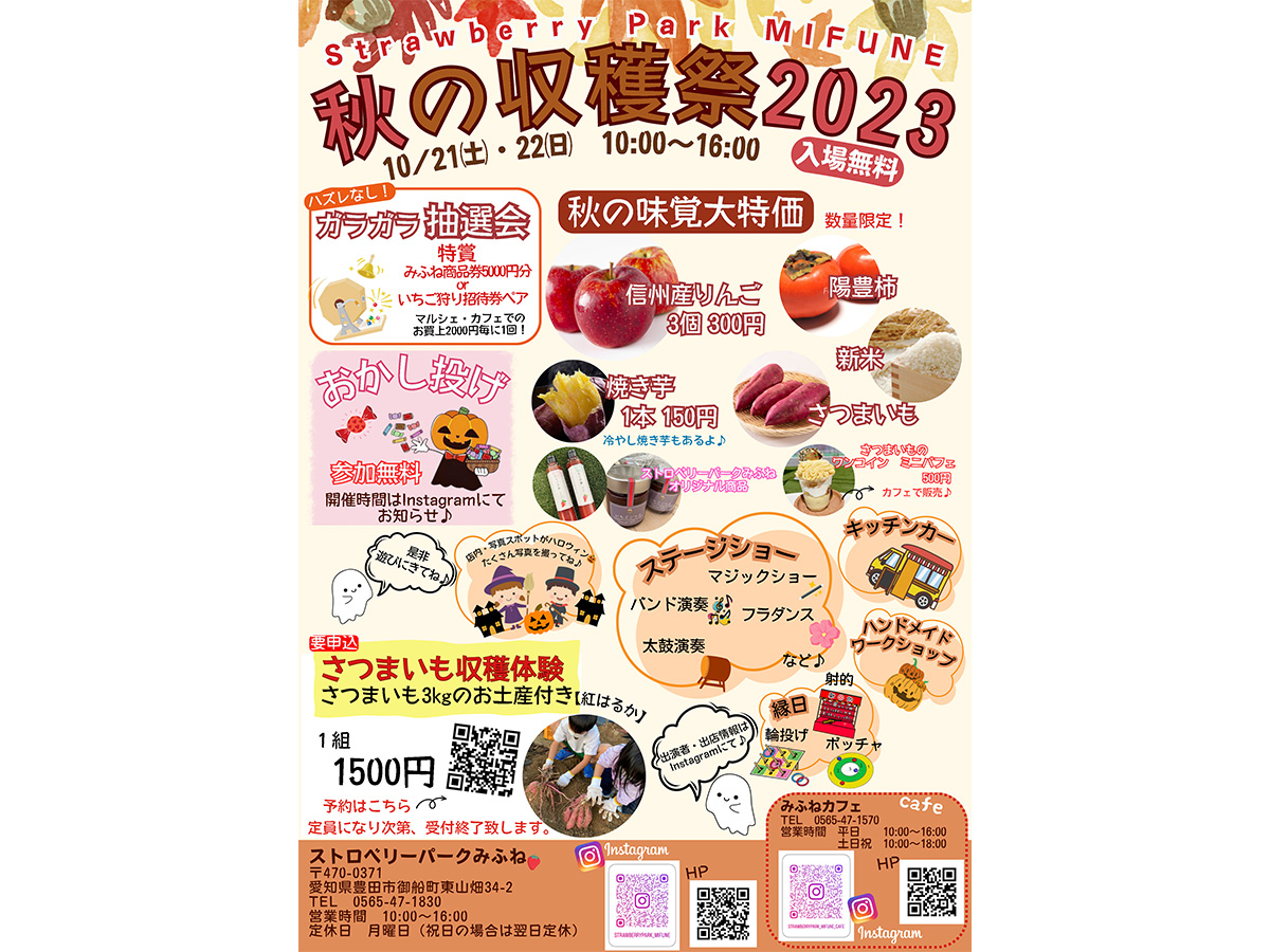 10月21日、10月22日 ストロベリーパークみふね 豊田市御船町東山畑34-2 |
