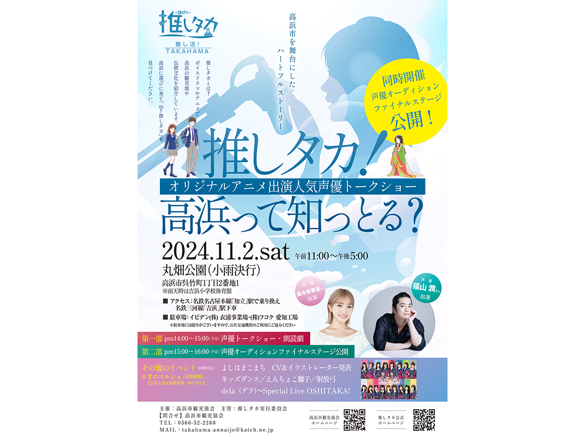 11月2日 丸畑公園(ステージ)、吉浜人形正面駐車場(オニマルシェ) ※ 小雨決行(雨天時:ステージは吉浜小学校体育館、オニマルシェは中止) 高浜市呉竹町1-2-1 |