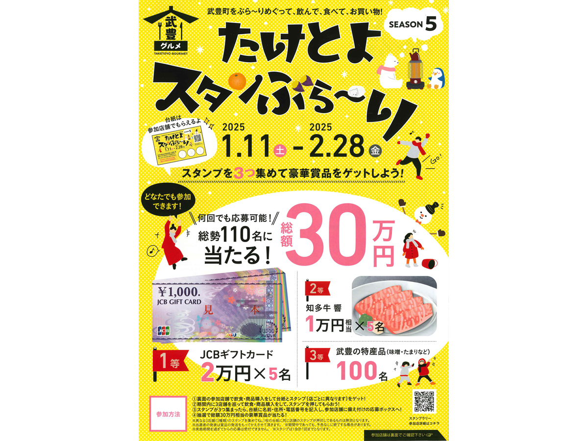 1月11日~2月28日まで 武豊町内のたけとよスタンぶら~り参加店舗 知多郡武豊町忠白田11-1 ※ アクセスマップは、武豊町観光協会を示しています |