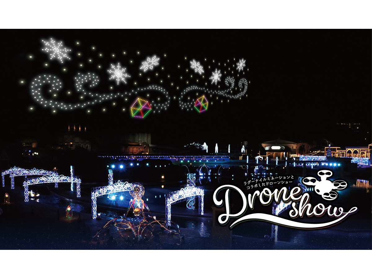 ラグーナイルミネーションとコラボした「ドローンショー」