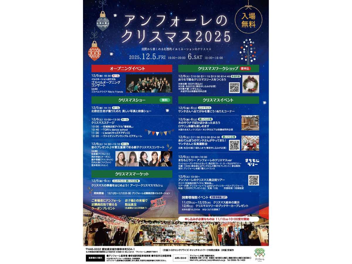 12月5日、12月6日 アンフォーレ(願いごと広場、エントランス、多目的室、近隣商店街) 安城市御幸本町504-1 |