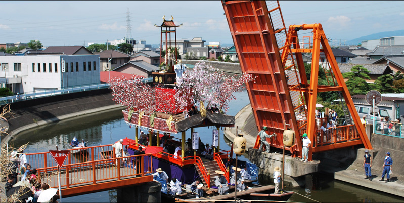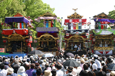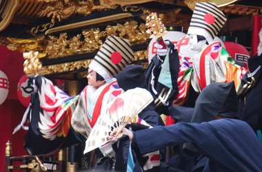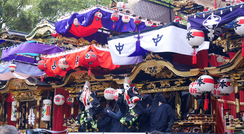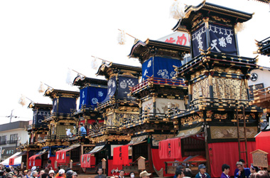 寛永 12 年(1635)から始まった針綱神社の例祭。主役は 13 輌の車山で、三層からなる豪華なもの。江戸時代から伝わるからくり人形の舞を奉納するのは全国でも唯一です。