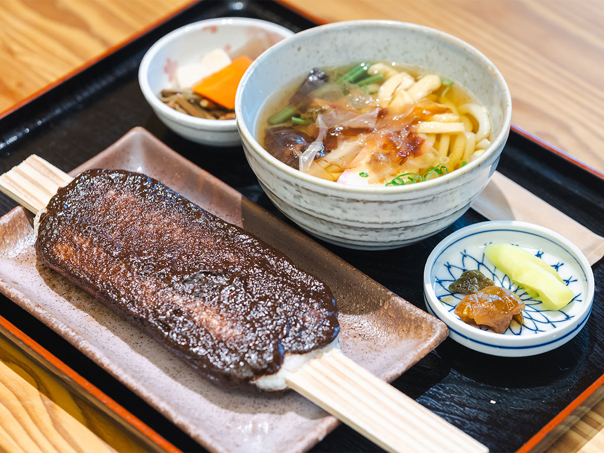 「JA愛知東農業協同組合 東栄直売所」は、東栄町の名物・東栄チキンや、おばちゃんたちが漬けたお漬物、名産品のお茶などを取り扱う地元の直売所です。お店の横に併設されている食堂では、東栄町の澄んだ空気と水で育った本わさびがたっぷりと乗るわさび丼が大人気!お好みでわさびを追加で擦り入れることができるので、擦りたての辛みを味わうことができます。そのほか、手作り味噌をかけた五平餅や手作りのそばもオススメです♪