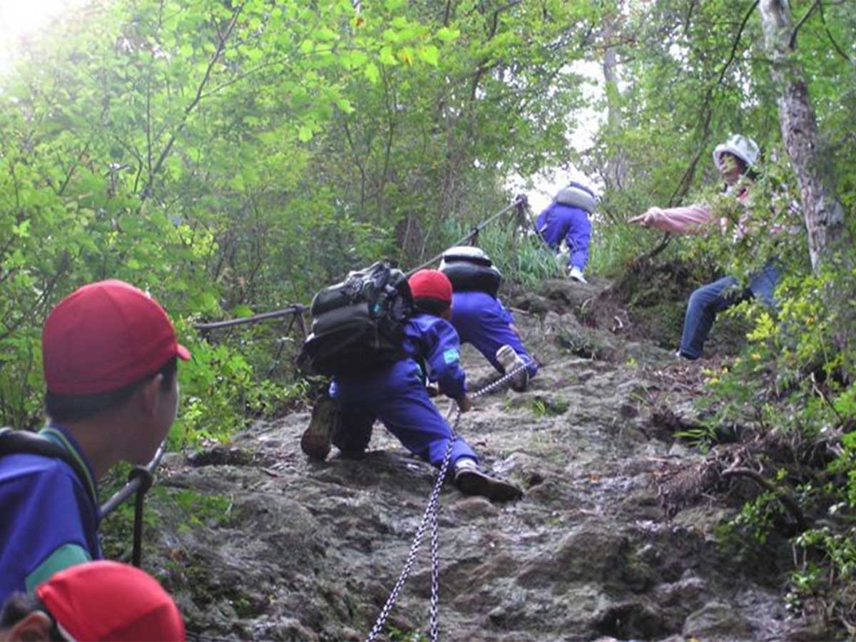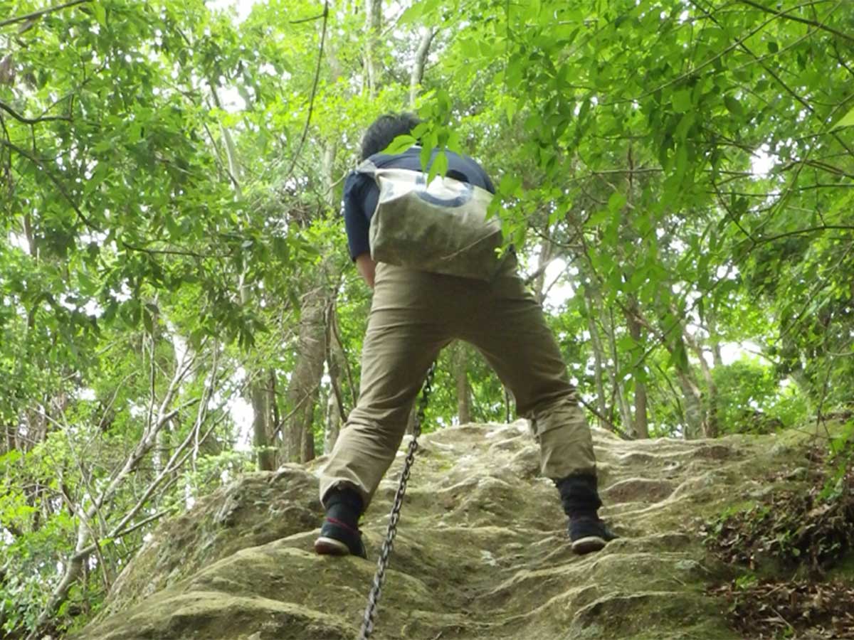 道中にはくさり場やはしご場など、スリリングなポイントがあります。充分な装備で安全にトレッキングをお楽しみください。