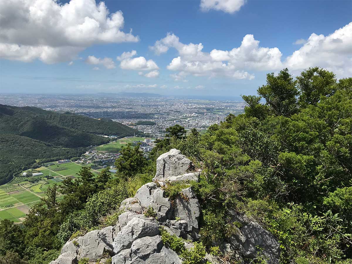 石巻山は豊橋市にある標高358mの山で、独特の姿から古くから信仰の対象とされてきました。山頂周辺の石巻山石灰岩地植物群落は、国の天然記念物に指定されていて、マルバイワシモツケやクモノスシダなどの石灰岩地に生える植物が見られます。自然歩道が整備されており、山頂から素晴らしい景色を見ることができるため、手軽に登れる登山スポットとして幅広い世代に人気があります。運が良ければ富士山を眺めることも出来るそうですよ。
