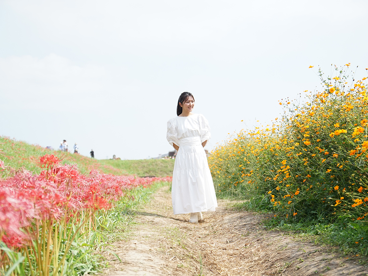 一宮市のシンボルで、高さ138メートルの美しい2つのアーチを持つ展望タワー「ツインアーチ138」がそびえ立つ「138タワーパーク」は、季節ごとに美しい「花畑」が楽しめる人気の憩いスポット。 四季折々、春は桜にバラ、秋はコスモスなど、美しい花々が楽しませてくれます。 中でも、一面ブルーのネモフィラとかわいらしいモッコウバラがフォトジェニックな写真が撮れると人気です。