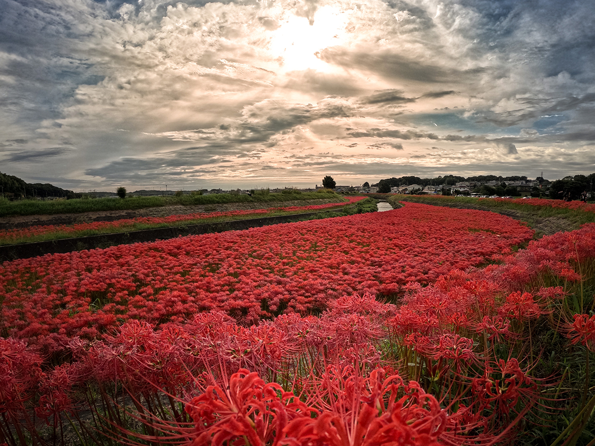 例年9月下旬になると、矢勝川堤の全長約1.5kmにわたって、地元の人々によって育てられた300万本以上の彼岸花が一斉に花をつけ、一面が真っ赤な絨毯に覆われる幻想的な光景が現れます。 不思議にも南吉やごんがいるような気がする、美しく懐かしい場所です。