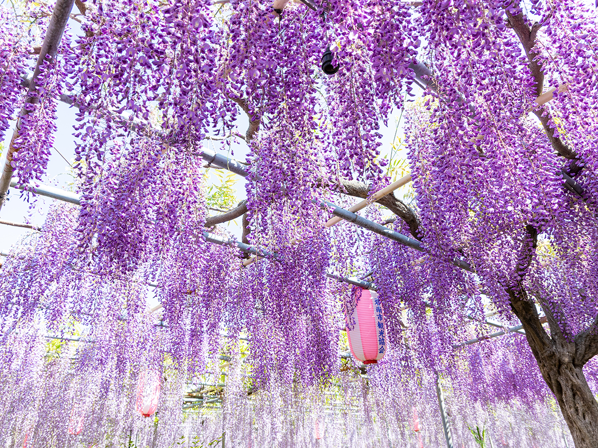 特に4月下旬~下旬に開催される『藤まつり』では、1,000平方メートルの敷地に1.5m以上の長い花房が広がる見事な風景と芳香が楽しめます。