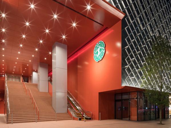 En outre, l'entrée qui attire les regards réussit à créer une atmosphère lumineuse et joyeuse en recouvrant tout, du hall d'entrée à la rue, de vermillon, qui était la couleur de l'ancien Misonoza.