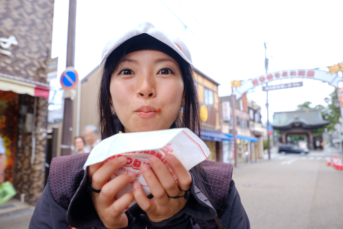 …あれっ!?先ほど朝の点心をいただいたばかりでは?水蓮、参道の店を物色する目はぎらぎらと光り、獲物を狙うハンターのよう。