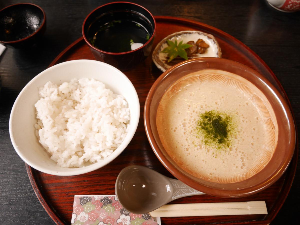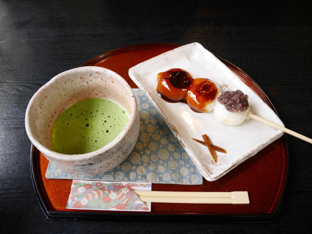戦利品を手に入れたので「天下茶屋」へ腹ごしらえに。「麦飯とろろ定食」と名物「天下もち」を食べ、すっかり天下人気どりです。