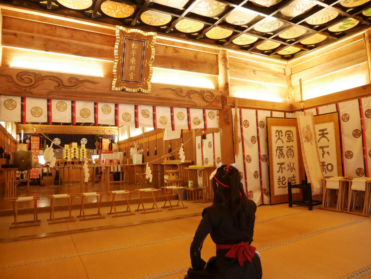 徳川家康公と始祖・松平親氏公が祀られている松平東照宮は、もともと松平家の屋敷があった場所。屋敷内に八幡宮を祀ったことが神社の起源となっているため、このように珍しい姿が見られるのです。