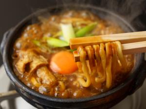 Udon rebus miso yang biasa menggunakan daging ayam non-Halal, tetapi untuk pelanggan Muslim masakan ini diubah menjadi halal. Restoran ini juga menawarkan udon rebus miso yang tidak menggunakan kaldu ikan untuk vegetarian dan vegan.