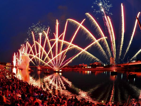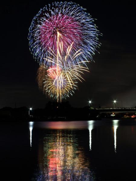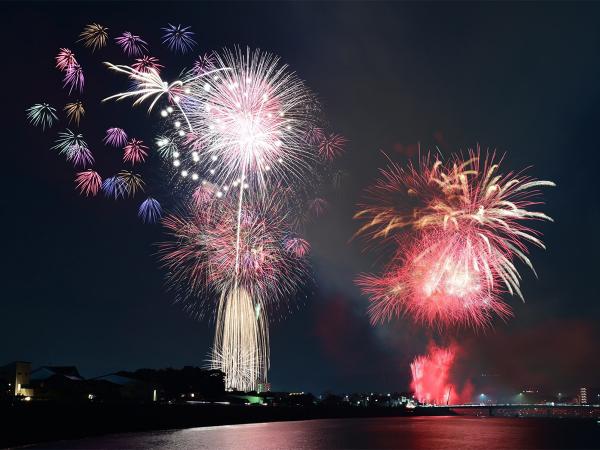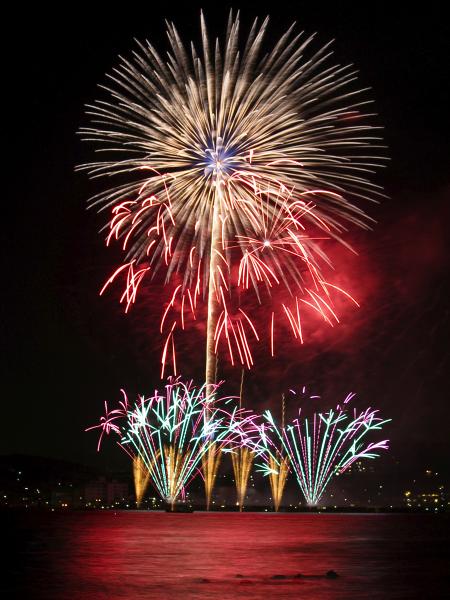 - Pertunjukan kembang api Festival Pelabuhan Kinuura (Kota Hekinan, Kota Handa, Kota Taketoyo)
