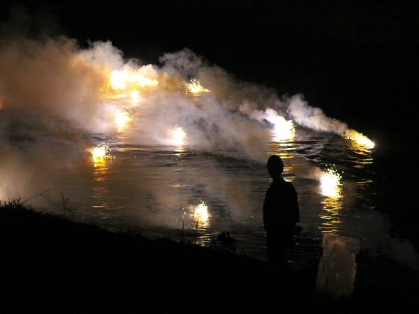 “kembang api” diadakan pada hari kedua di bantaran Sungai Toyokawa.