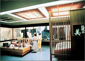 This hall was opened in March 1984 to preserve and exhibit the techniques and various kinds of materials used for tie-dyeing.