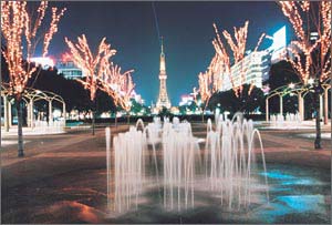 Built in the center of the Hisaya Odori Park in 1954 the tower has two functions of TV wave transmission from the 180m high antenna and as the first observation balcony in Japan.