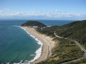 Stretching around 1 km from the lighthouse to Hiinosekimon facing the Pacific coast, this beautiful, curved sandy beach basks in the turbulent waters of the Pacific Ocean, and has been named one of "Japan's Top 100" (streets, beaches, white sand and green pines, soundscapes).