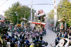 These days, even when they pass through streets lined with modern buildings, showering colorful storms of confetti, progressing to the grunted chants of the hauliers, the eight floats that annually set out from Koromo Jinja Shrine are still an exciting spectacle.