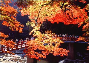 The best of Korankei is the scarlet maple leaves in autumn.