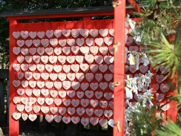 이누야마 성 기슭에 위치해 있는 곳으로, 특히 여성들에게 있는 명소인 산코이나리 신사. 그 이유는 SNS에 올리기 딱 좋은 귀여운 핑크빛 하트 모양의 에마가 있기 때문입니다! 에마란, 소원을 써서 신사에 봉납하는 목제 그림판을 말합니다. 하트 모양의 에마는 남녀의 좋은 인연과 가정의 화목함에 효험이 있는 것으로 알려져 있어, 많은 여성들이 연애 성취를 기원하고자 방문하고 있습니다.