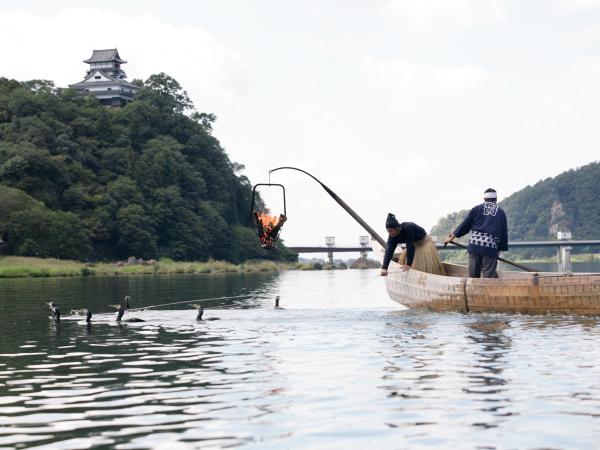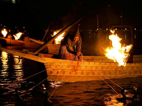 우카이는 우카이 배를 탄 우쇼라고 불리는 우카이의 장인이 훈련한 가마우지(바닷새의 일종)를 이용해 민물고기를 잡는 고대의 어법입니다. 우카이 배에는 각각 우쇼와 사공이 탑니다. 1명의 우쇼가 이용하는 가마우지는 10마리. 목에 밧줄을 감아, 우쇼의 능숙한 손놀림으로 가마우지들이 물속으로 들어가 은어를 비롯한 민물고기를 잡습니다. 가마우지가 물고기를 잡아 수면 위로 올라오면 우쇼가 밧줄을 잡아당겨 가마우지가 잡은 물고기를 입에서 꺼내는 과정을 몇 번에 걸쳐 반복하면서 물고기를 잡습니다. “호우 호우”라고 외치는 우쇼의 기운찬 함성, 그리고 물속과 우쇼를 몇 번이나 왕래하는 가마우지, 조명을 받아 아름답게 밤하늘을 수놓은 국보 이누야마 성을 배경으로 1300년 전통을 자랑하는 환상적인 역사적 장면이 눈앞에서 펼쳐집니다.