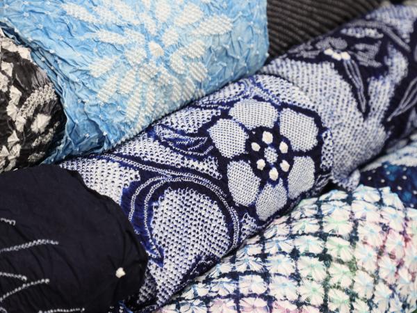 이는 묶기, 꿰매기, 접기의 단순한 3가지 작업을 통해 전부 수작업으로 천을 염색함으로써, 여러 가지 무늬를 그려내는 염색 기법입니다. 에도 시대 때부터 고안된 기술은 무려 100가지 이상이 있다고 합니다. 워낙 복잡하고 다양해 한 가지 기법을 한 사람의 장인이 구사합니다.
