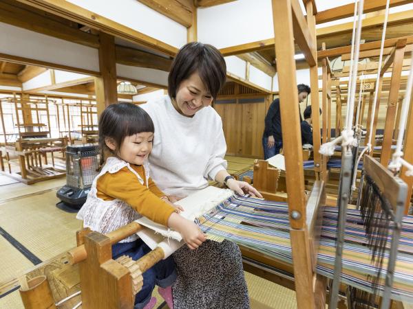 '생활에 필요한 것은 직접 만든다'는 것이 산슈 아스케 야시키의 방침. 이곳에서는 쌀을 재배한 뒤 남는 짚을 엮어 신발을 만들거나 초목으로 염색한 실을 짜는 등 당시 일상적으로 하던 수작업을 체험하실 수 있습니다. 편리한 현대 생활 속에서 이러한 일본의 수작업은 사라지고 있지만, 손발을 사용해 생활을 꾸려나가던 당시의 현명한 지혜를 느끼실 수 있는 곳입니다.