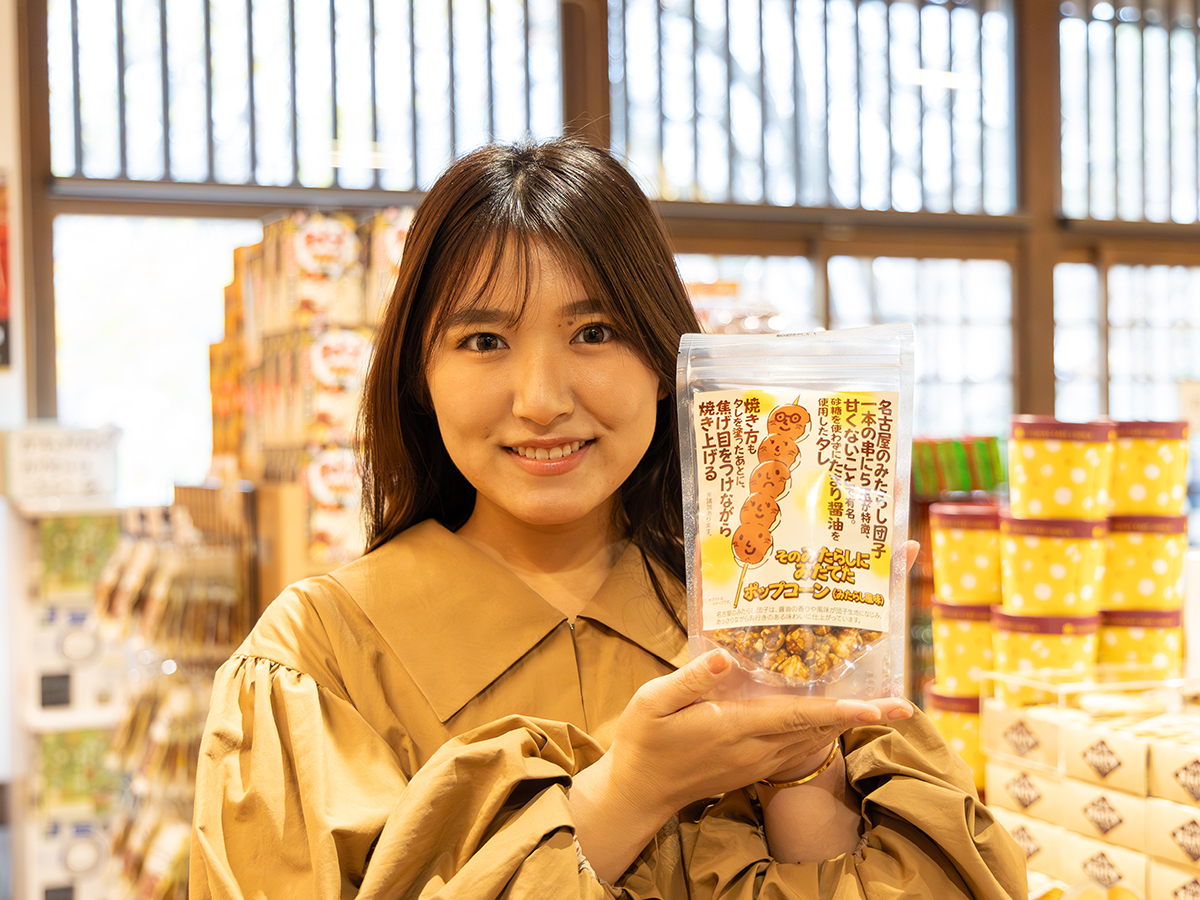 매장 내에는 나고야만의 매력이 넘치는 기념품이 1000종류 이상 갖추어져 있으며, 그 가운데 인기 넘버원은 달고 짠 맛인 '단짠'이 어우러져 계속 먹고 싶어지게 하는 '미타라시 팝콘'입니다.