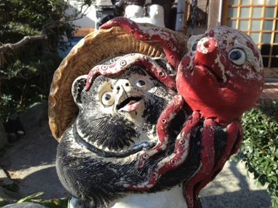 A walk around the small island is about 3.6 kilometers, and everywhere you look, there are octopus themed signs, characters, and figures. Even the local police station is designed to resemble an octopus. The souvenir stands have various octopus themed items, including toys, key-tags, sembei rice-crackers and sweets. Depending on the season, you may even see dried octopus stretched out on bamboo stakes like kites. Incidentally, the Japanese word for kite and octopus is the same,…tako!.