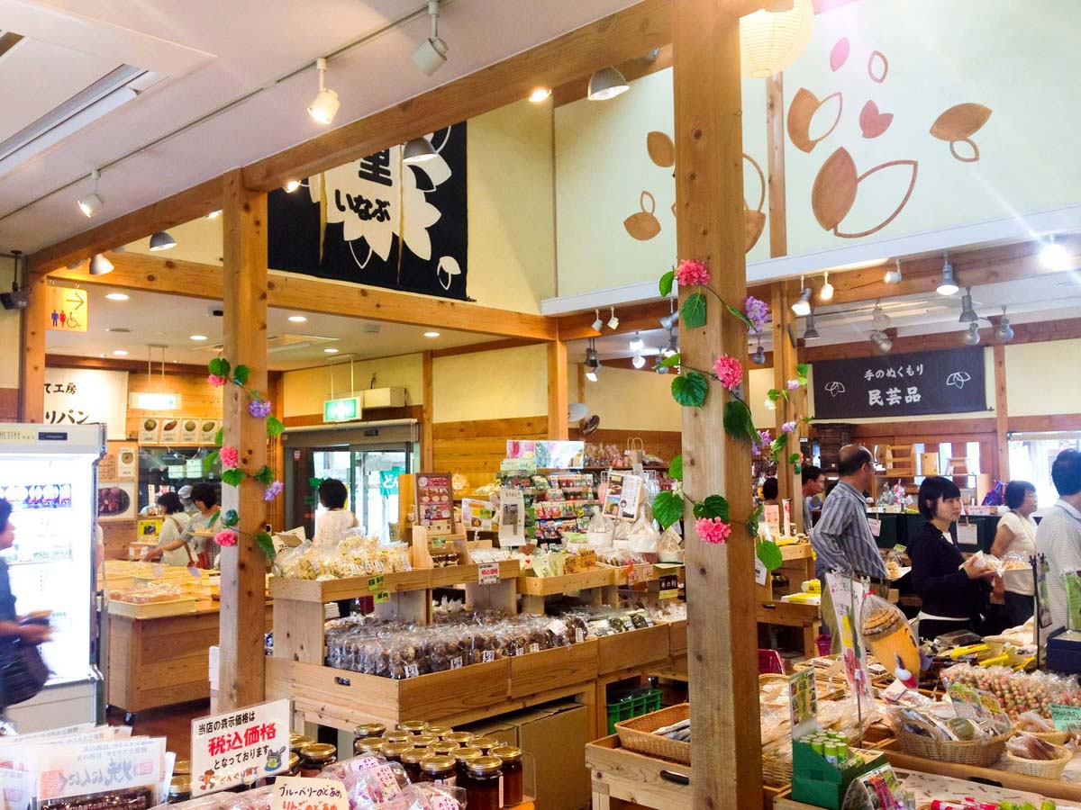 과거 소금길(시오노미치)과 미노 대로가 교차하는 역참 마을로서 붐볐던 이나부. 도로 휴게소 내에 위치한 '동구리 요코초'에서는 역참 마을의 활기찬 분위기를 그대로 느끼실 수 있으며, 오카자키의 핫초 미소(된장)와 이다 지역의 과일, 야마오카의 한천, 신시로의 차 등 대로를 따라 위치한 지역의 특산품과 '쌀의 고향 이나부'의 쌀가루를 사용한 쫄깃한 빵 등을 판매하고 있습니다.