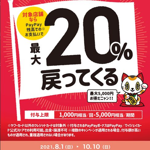 常滑市内の対象店舗で「PayPay」を利用した支払いに対し、利用額の20%相当分のポイントを付与して還元します。