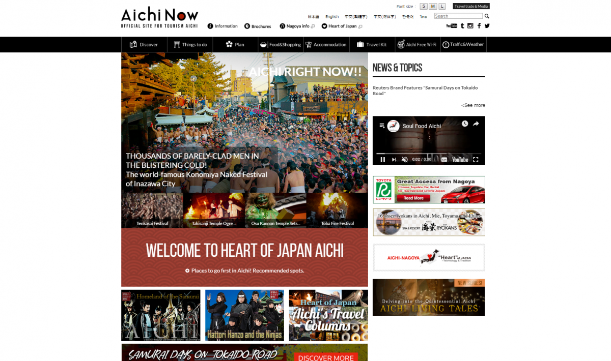 愛知県の公式観光サイト「AICHINOW」が一般社団法人日本フォトツーリズム協会主催「フォトジェニックサイト・アワード2018」にてベスト100に選ばれました。「フォトジェニック・アワード2018」とは、全国市町村及び観光協会が運営する1700以上の公式ウェブサイトから、「魅力的な写真で旅に誘う」、インバウンド観光客に「優しくわかりやすい外国語」対応があるウェブサイトを選定するアワードです。今後もインバウンドの方にわかりやすく、魅力的な情報発信に努めて参ります。