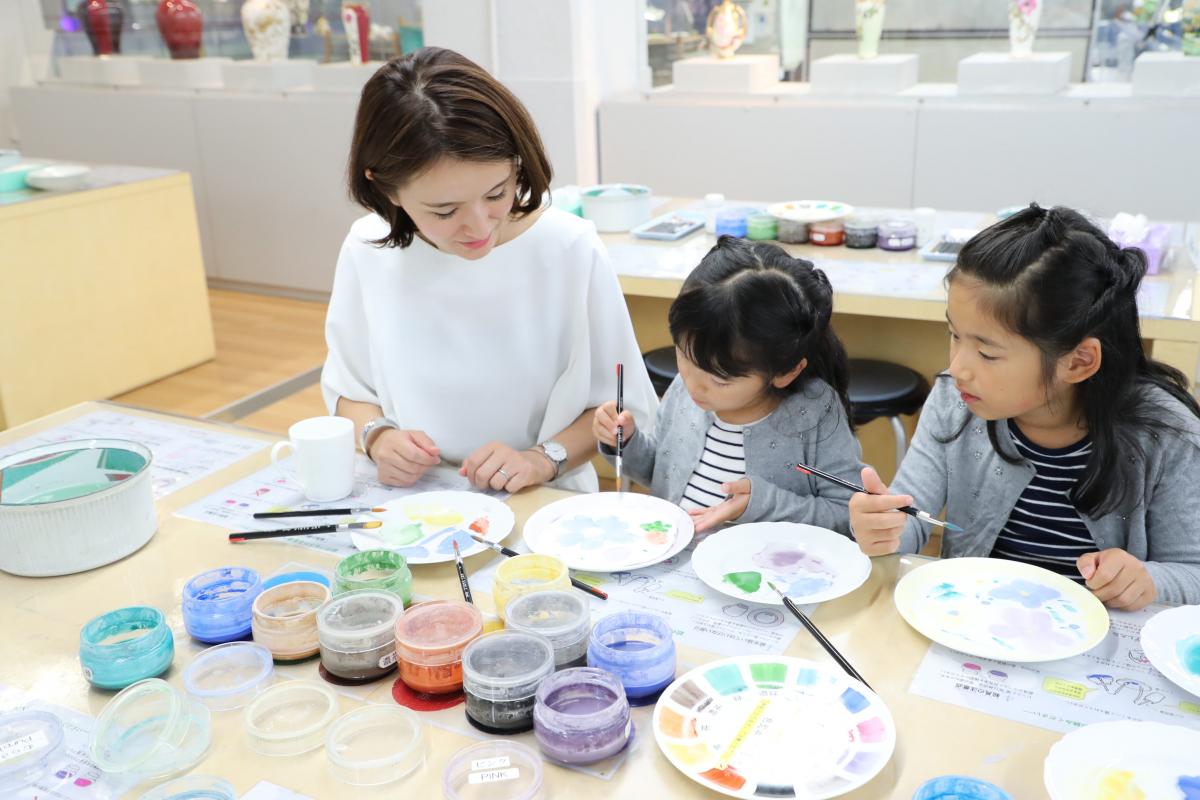 2025年10月から新たに「プレミアム絵付け体験」(完全予約制)を開始しました。水溶きの絵の具で自由に絵を付けられる従来の「絵付け体験」とは異なり、絵付けの技術や技能を習得したマスターペインター(絵付け技能士)から直接指導を受けながら本格的な絵付けを体験できるプログラムです。