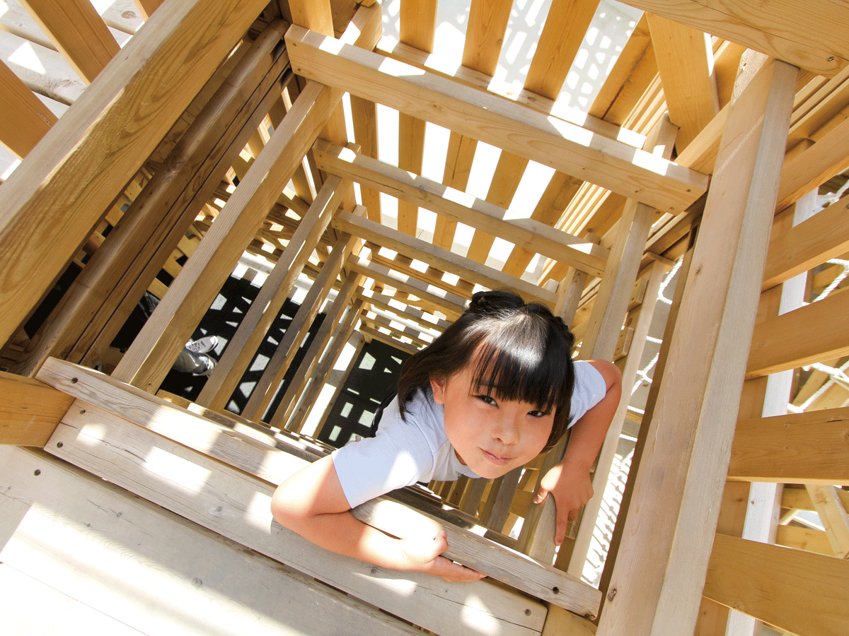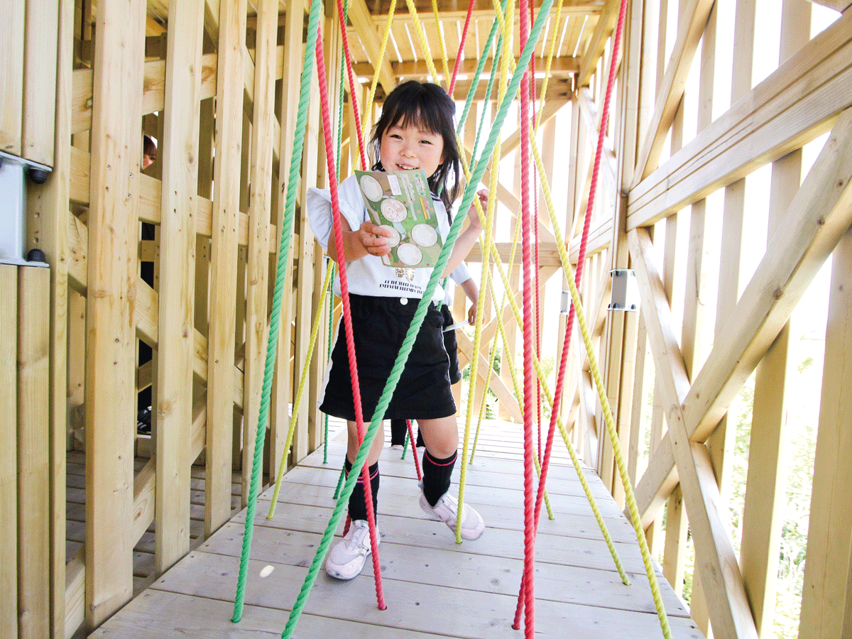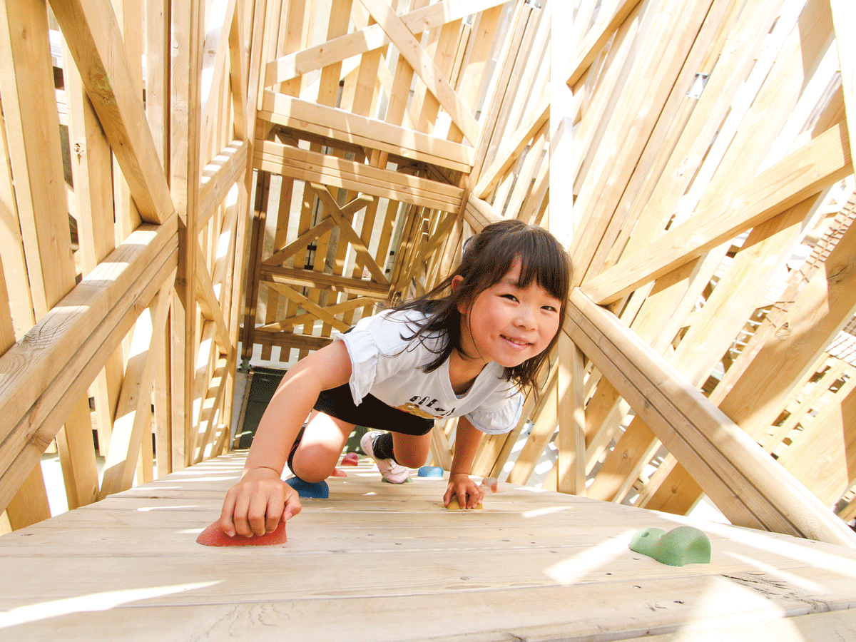約200個の木製ブロックから構成され、コースの中にあるクライミングやはしご登りなど様々なアスレチックをクリアしてゴールを目指すアトラクションです。