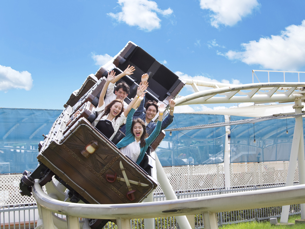 伝説の港町をイメージしたテーマパーク「ラグナシア」では、スリルと爽快感たっぷりのジェットコースター「パイレーツ ブラスト」「アクア ウィンド」や、丸太のボートに乗って激流を水しぶきを上げて一気にくだる「レジェンド オブ ラビリンス」など絶叫系から、様々な仕掛けや障害物をクリアして思いっきり体を動かせるアスレチックパーク、家族で楽しめるメリーゴーランドや観覧車まで、楽しいアトラクションがいっぱい。