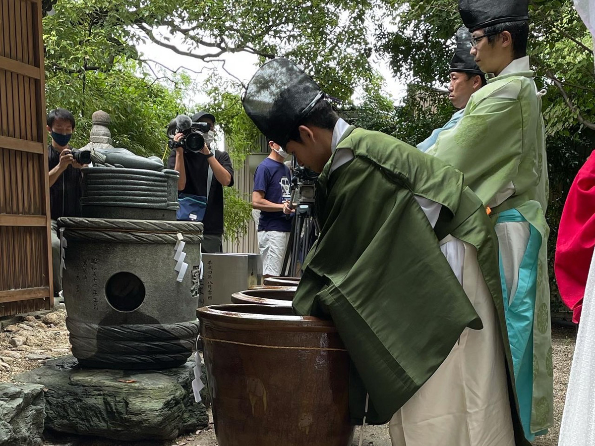 各地から漬物業者が集まり、祝詞奏上の後神饌をささげ、巫女の舞が奉納されます。その後、一般参拝者も参加できる漬込神事が執り行われ、ここで漬け込まれた野菜は万病の妙薬として珍重される「香乃物」となり、熱田神宮に奉納されます。