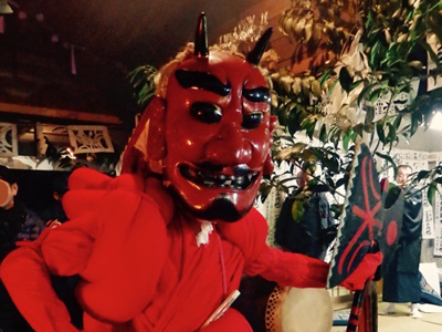 国の重要無形民俗文化財に指定される700年以上続く伝統芸能です。下粟代に残る「奉開御花数覚張」という古文書は文化3年(1806年)の年号が記された、この地区での花祭の開催を示す最古のものです。そのためか、この地区での神事は正確に伝承されているとされます。