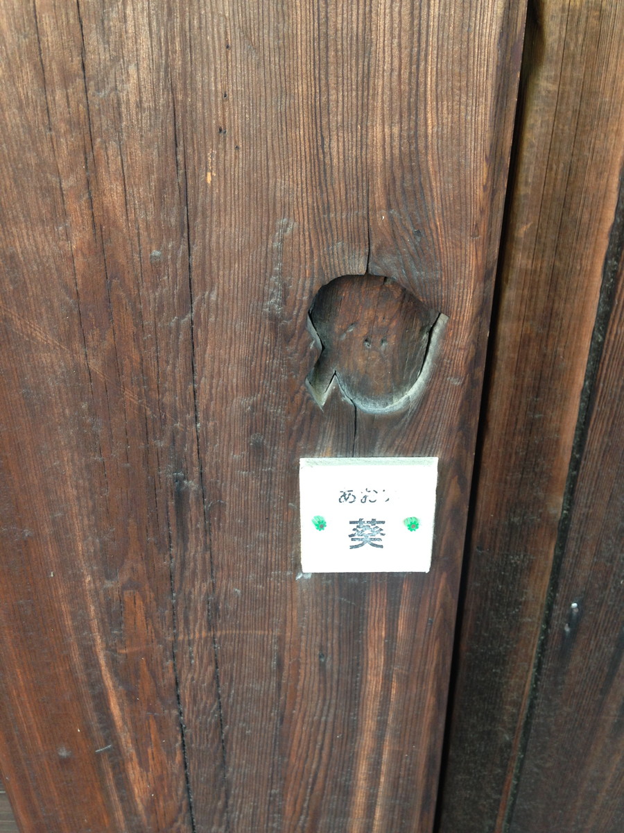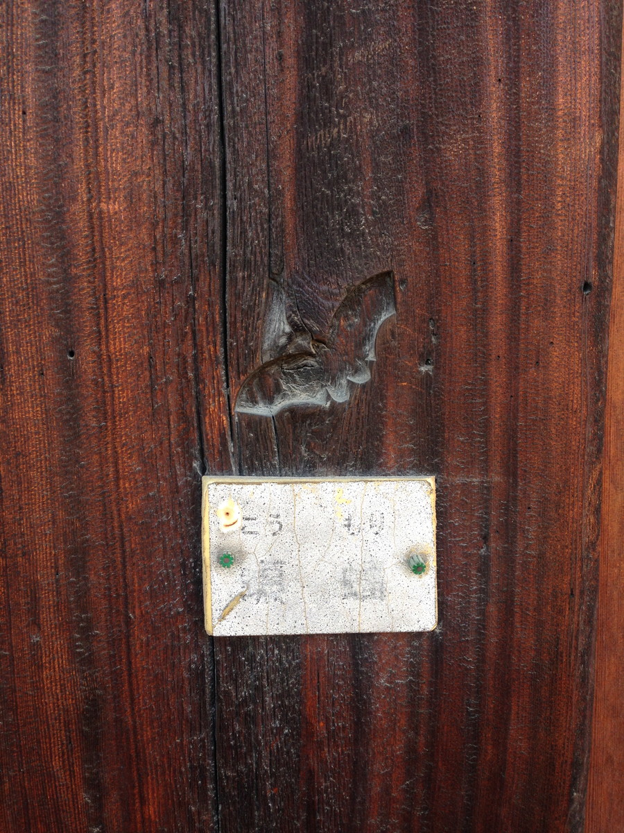 柱の節跡に縁起物や動植物などをかたどって、デザイン的に手当てしたあとが残っています。こうもりや小判、ぶどう、桔梗など節の部分に可愛い模様があるのでぜひ探してみてください。