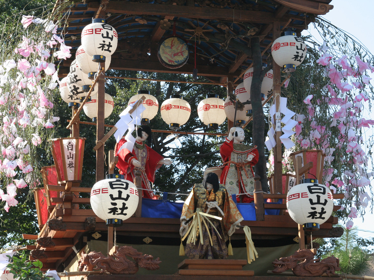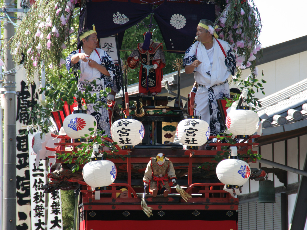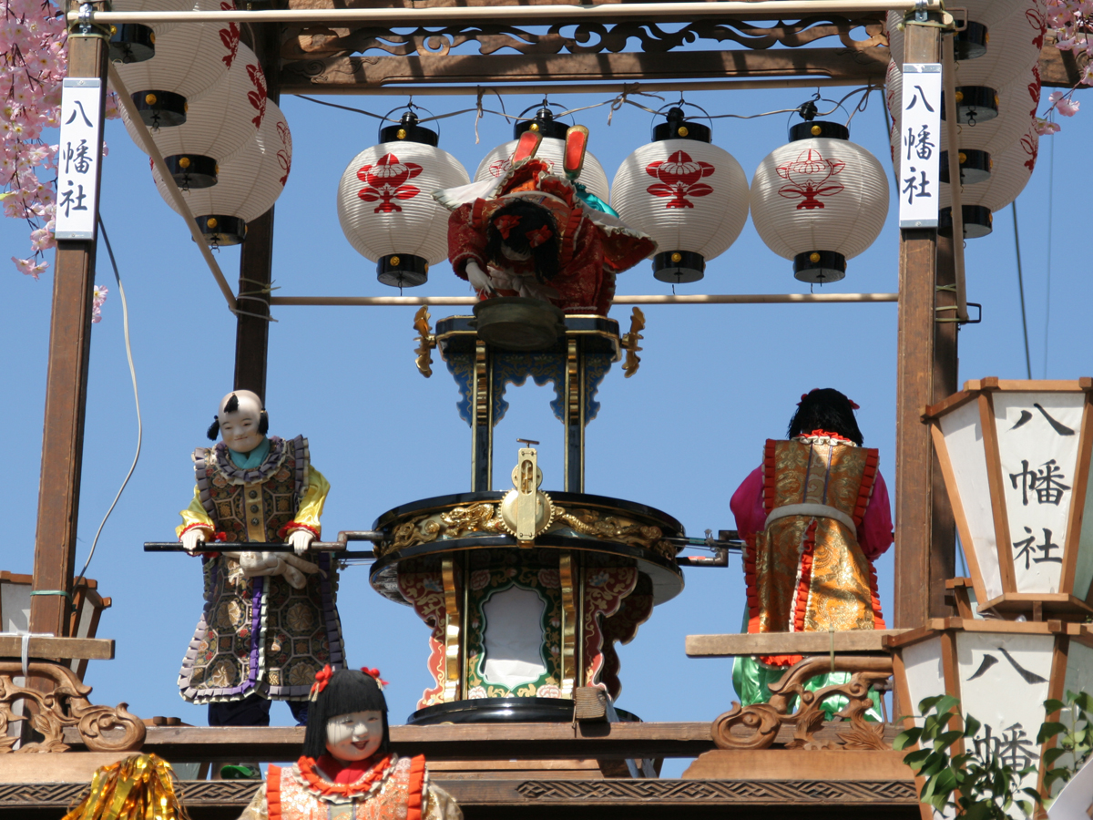 祭りで曳き回される5台の山車やからくり人形はそれぞれ異なる特徴をもっており、各地域によって異なった踊りを披露します。