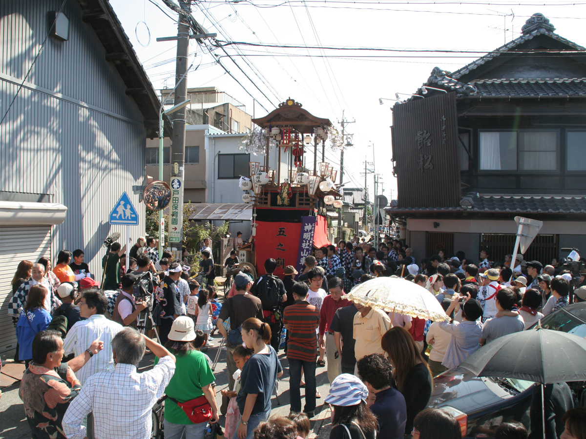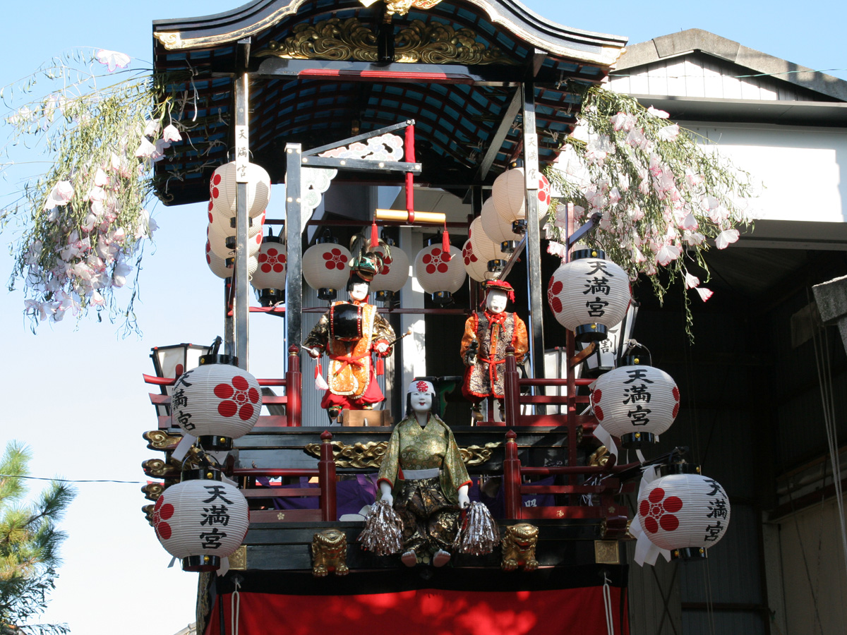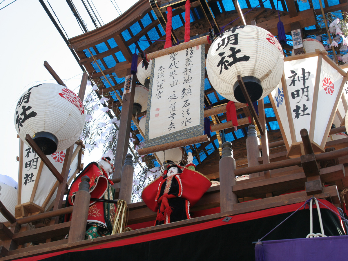 祭りで曳き回される5台の山車やからくり人形はそれぞれ異なる特徴をもっており、各地域によって異なった踊りを披露します。