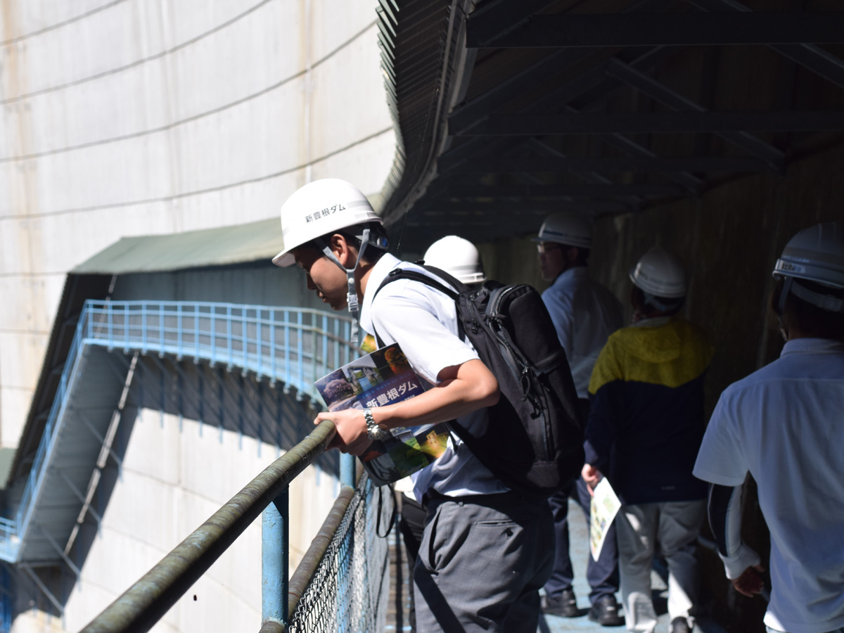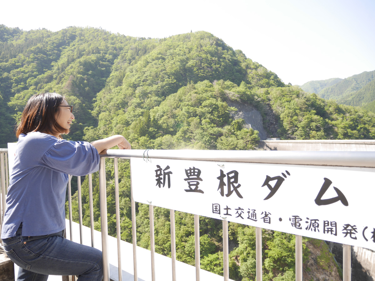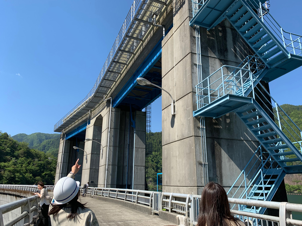 新豊根ダムの展望台、ダム堤頂は自由に見学することができます。平日は電話でのご予約で、新豊根ダムの建物内やダムの中、ゲートなどの見学をすることもできます。