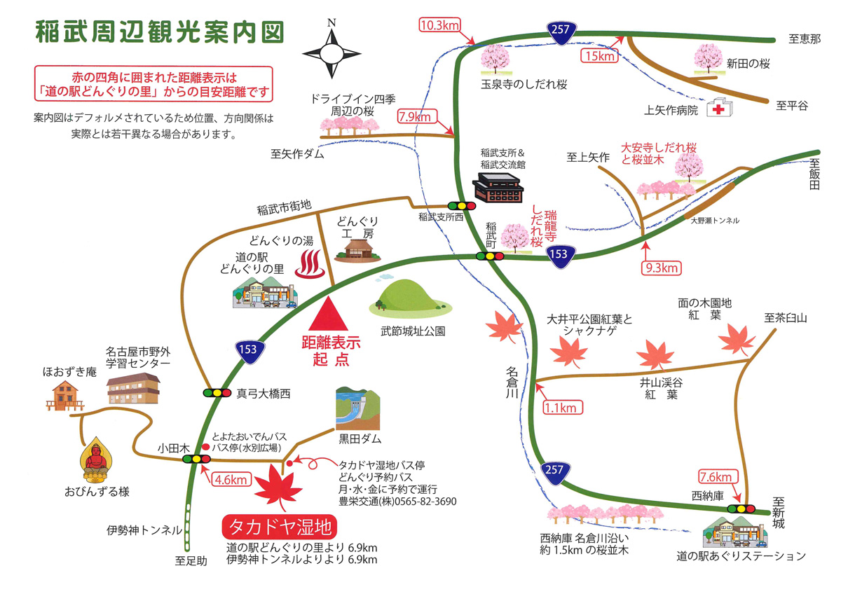 ※ 国道153号にある「小田木町」の交差点を東方面へ進み、1.5km先に「タカドヤ湿地」の看板がありますので、看板の前に路上駐車でお願いします。 - 予約バス