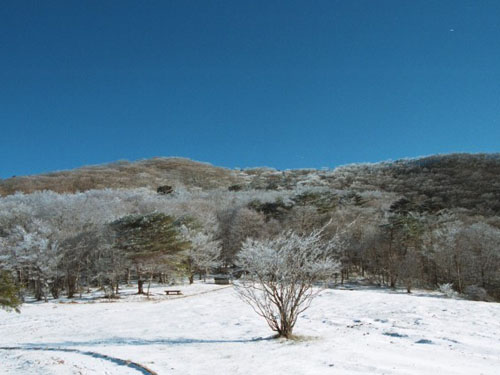 面ノ木原生林の霧氷(樹氷)(めんのきえんちのむひょう(じゅひょう))