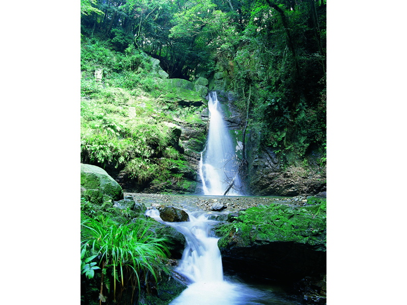 古くから三河の名勝のひとつとして知られる牛の滝。高さ10m、幅2mあまりの雄滝と、高さ4m、幅4mの雌滝とがあり、夏には涼を求める人たちで賑わいます。滝壷の近くはシイなどの天然林に覆われ多湿なため、シダ類をはじめ多くの植物が生い茂り、とても涼やか。 またこの滝には名前の由来となった伝説も残されており、魅力ある景勝地となっています。