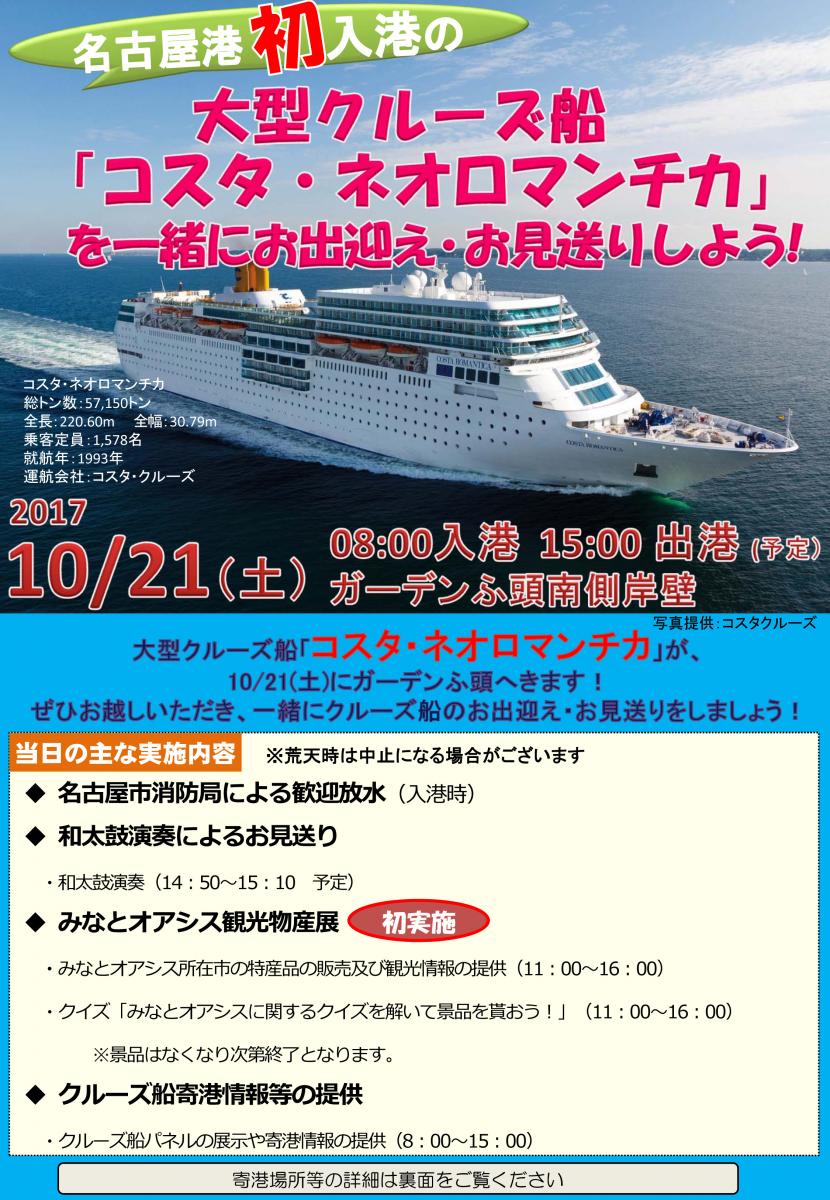 大型クルーズ船「コスタ・ネオロマンチカ」が名古屋港に初入港!一緒にクルーズ船のお出迎え・お見送りをしよう!