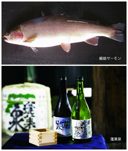 ★シェフサービス「絹姫サーモン天ぷら」「鮎塩焼き」「おにぎり」
