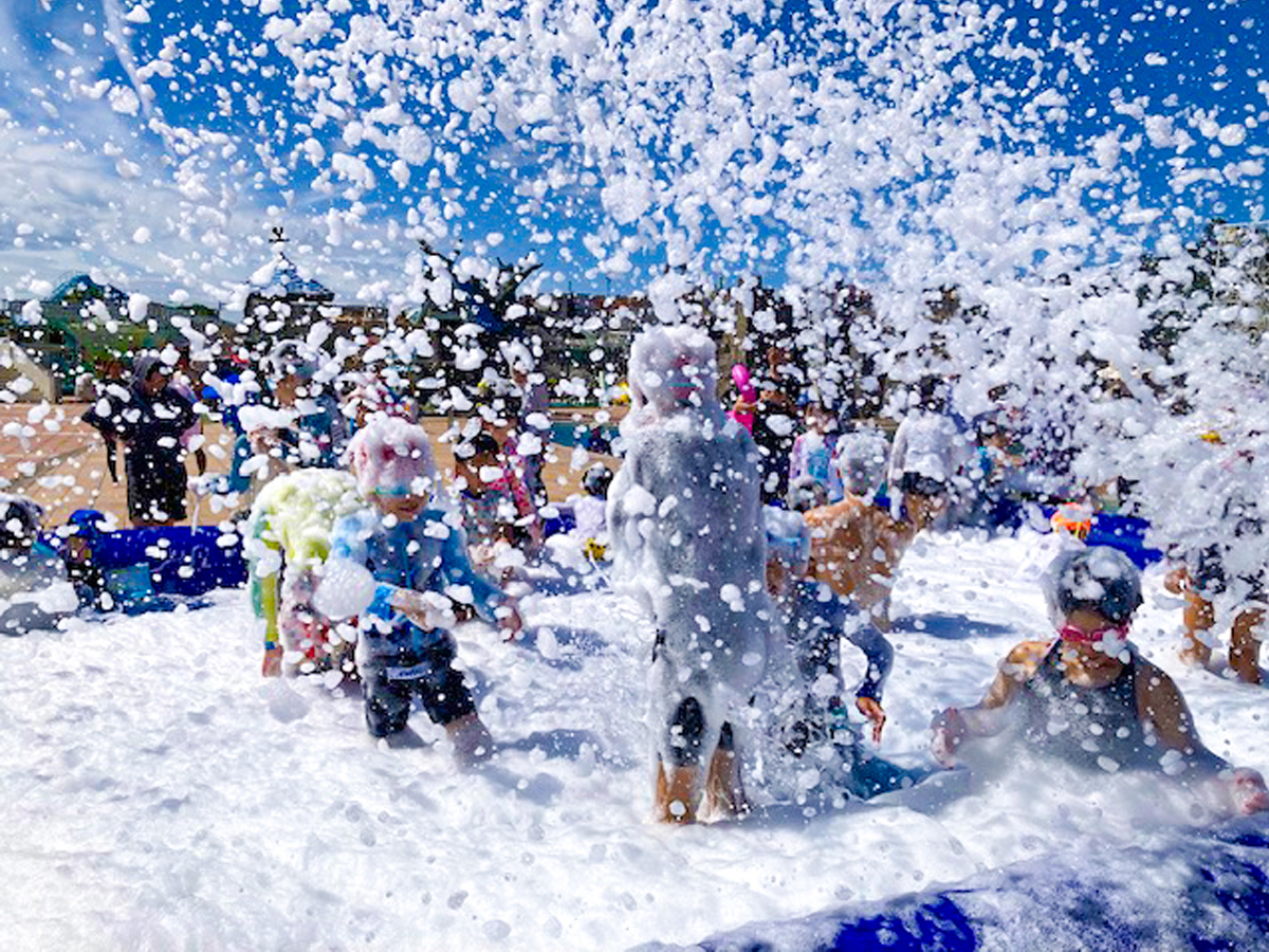 大人も子どもも全身泡まみれ、大人気のコンテンツが「ウロボロスの河」中州エリアにて開催されます。
