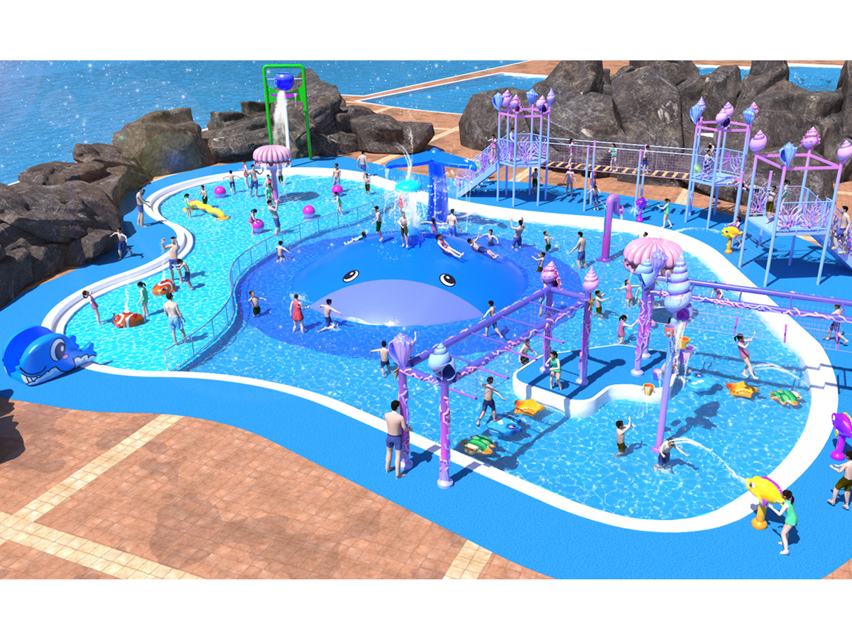 くじらさんのスプラッシュガーデンがOPEN。直径約9m、高さ約2mの巨大なくじらのスライダーとアスレチックなど多数のアイテムが登場します。水深10㎝~30㎝のエリアもあり、小さなお子様も安心して遊べます。