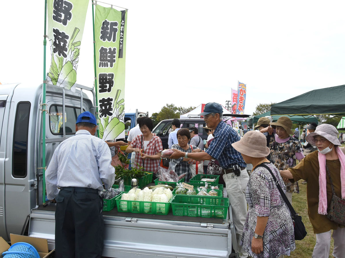 地元で収穫された農作物や花卉の販売コーナー、フリーマーケットのコーナーなどがあります。
